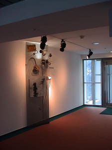 In diesem Projekt wurde ein plastisches "Zeichensystem" geschaffen. In diesen Gestaltungen wurden historische Artefakte auf transparenten Gittern thematisch angeordnet und durch ein Lichtsystem teilweise auf der dahinterliegenden Wand projiziert. Die Gestaltung erfolgte auf 5 Etagen.