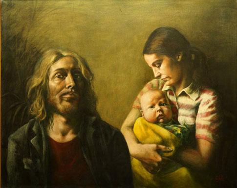 "Familie mit Basti", Öl auf Leinwand, h / b: 100/70 cm